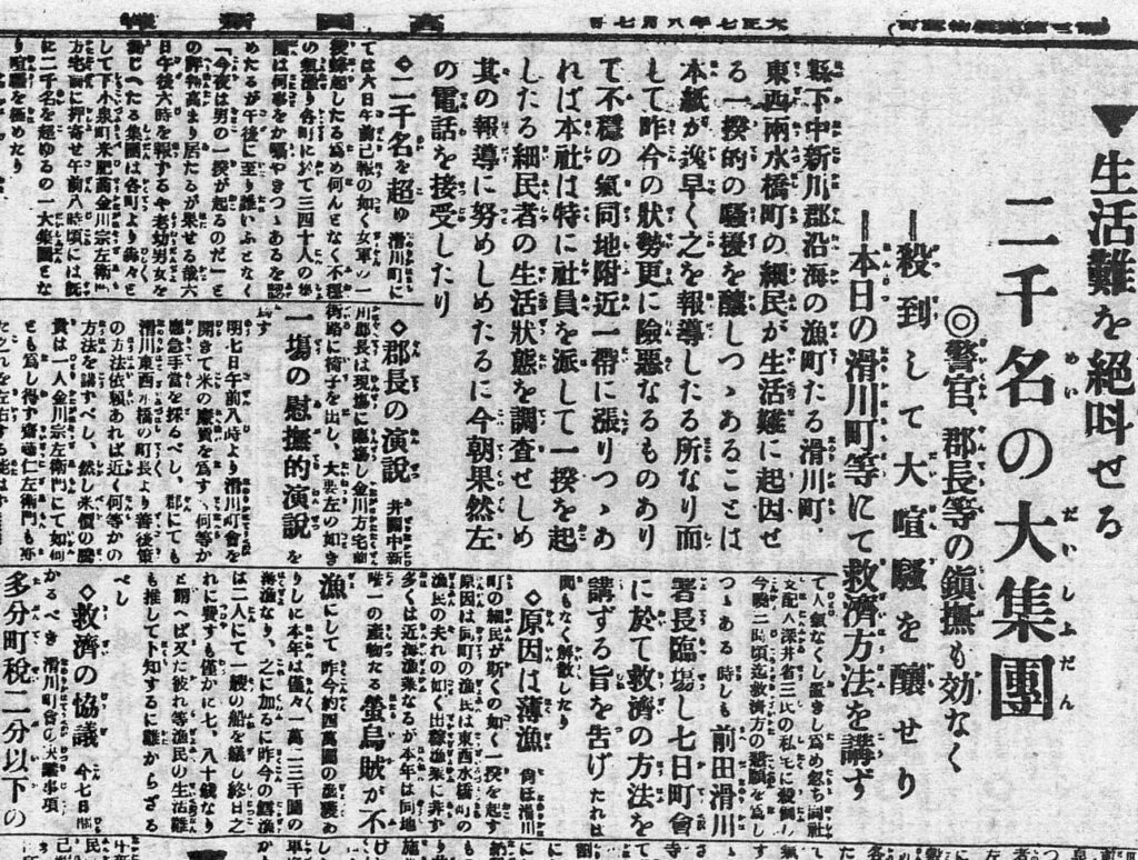 それが起きたのは107年前の大正7(1918)年7月22日。ところは富山東部の魚津。