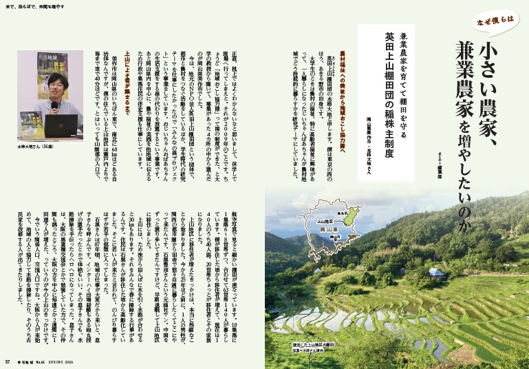 なかでも2025年10・11月に開催した季刊地域セミナー「ゆるがぬ暮らしをつくる」の内容を収録した、岡山県の水柿大地さん、新潟県の鴫谷幸彦さんによる「なぜ僕らは、小さい農家、兼業農家を増やしたいのか」は読みごたえ十分です。